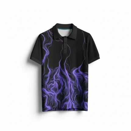 Premium Black and Purple Lightning Pattern Sports Polo – Performance Athletic Wear
