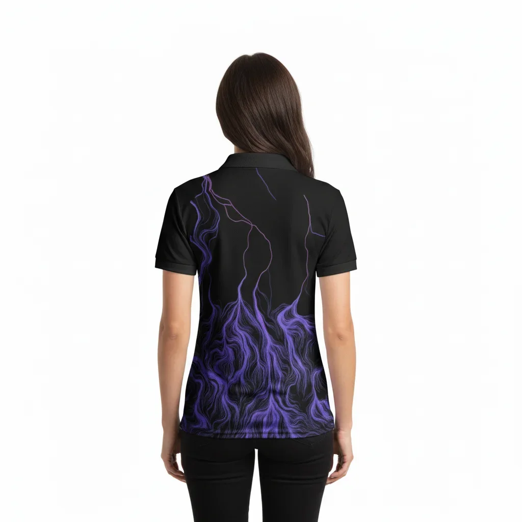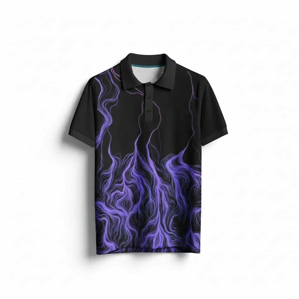 Elevate your athletic performance with our Black and Purple Lightning Pattern Sports Polo. Engineered for both style and functionality, this polo features a striking electric purple lightning bolt design against a sleek black background. Crafted from premium moisture-wicking, breathable fabric, it ensures maximum comfort during high-intensity training or casual team events. The reinforced collar and four-way stretch technology provide a perfect fit and long-lasting durability for athletes of all levels